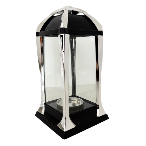 2185-znicz kapliczka srebrna przezroczysta prawy bok 1 sztuka