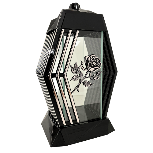 2245-znicz kapliczka trapez ze srebrną różą prawy bok 1 sztuka