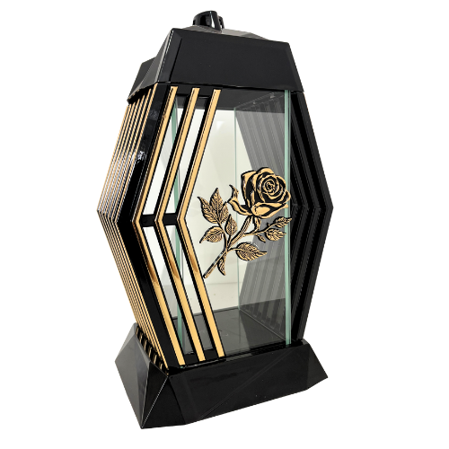 2245-znicz kapliczka trapez ze złotą różą prawy bok 1 sztuka
