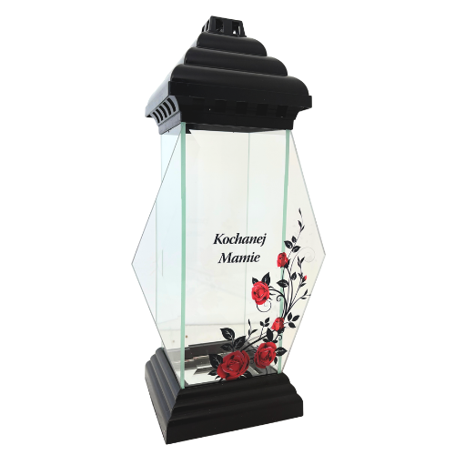 437-znicz kapliczka czarna z napisem Kochanej mamie prawa strona 1 sztuka