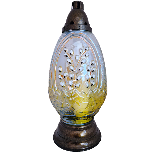 znicz jajko, znicz świąteczny, znicz wielkanocny, duże jajko, żółte jajko, bazie, szklane jajko, ozdoba na grób, ozdoba