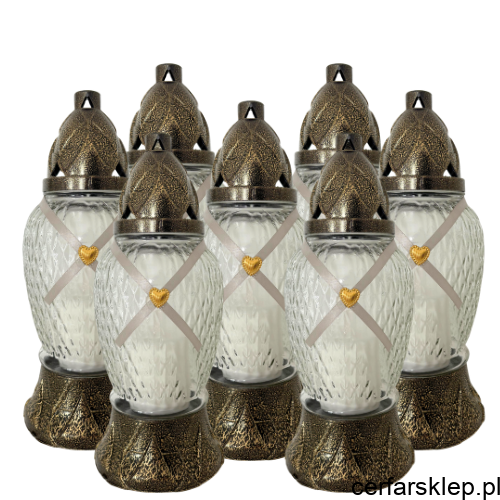 Subtelna dekoracja: Front znicza zdobi elegancka, szara wstążka ułożona na krzyż, zwieńczona centralnie umieszczonym złotym sercem. To detale, które nadają produktowi osobistego, pełnego miłości charakteru.