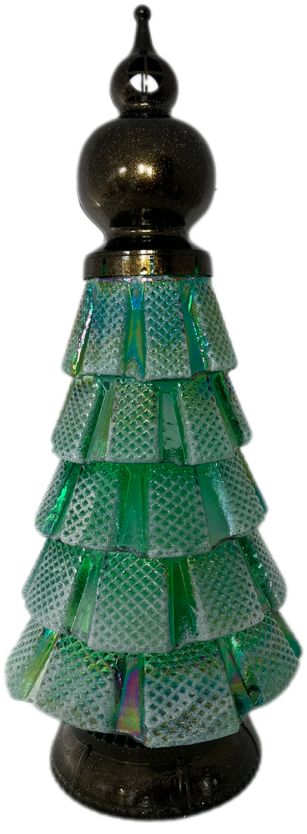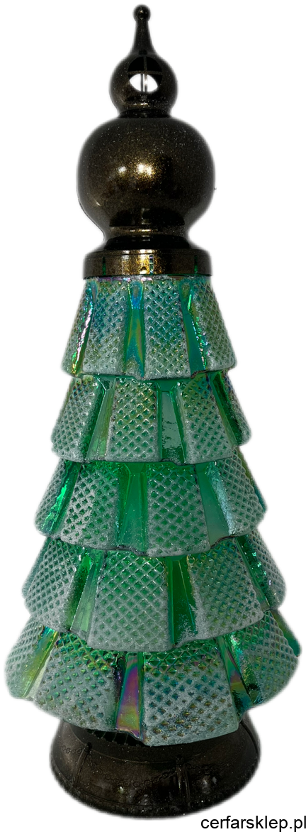 Elegancka Podstawa i Kapturek: Solidna, ciemna podstawa i wykończony kapturek (szpic) w kolorze brązowego, metalicznego brokatu dodają całości stabilności i klasy. Kapturek zwieńczony jest ozdobnym, smukłym detalem.