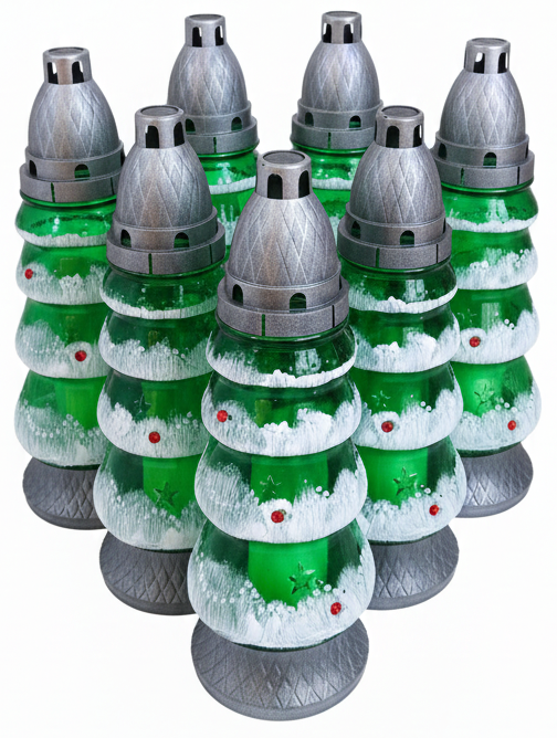 Symbolika: Połączenie tradycyjnego kształtu znicza z motywem świątecznej choinki doskonale oddaje nastrój zadumy i nadziei towarzyszący Świętom.