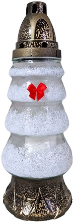 Ten elegancki znicz łączy w sobie tradycję ze świątecznym urokiem, idealnie pasując na pomniki w okresie zimowym oraz świątecznym.
