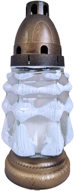 Świąteczny Akcent: Na froncie znicza widoczne jest subtelne wytłoczenie lub zdobienie w kształcie gwiazdy, które podkreśla świąteczny charakter lampionu.