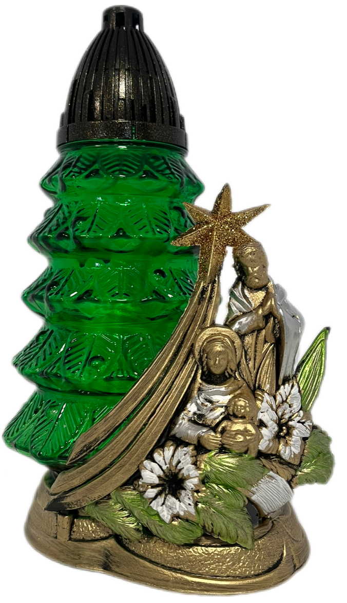 Motyw Dekoracyjny: U podstawy znicza znajduje się wytłaczana, trójwymiarowa scena Narodzenia Pańskiego, przedstawiająca Świętą Rodzinę: Maryję, Józefa i Dzieciątko Jezus.