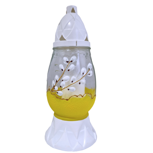 Znicz Szklany Wielkanocny – „Jajko” z Motywem Bazi (Żółty)