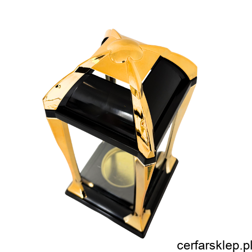 Wyjątkowa Estetyka: Połączenie głębokiej, błyszczącej czerni z lustrzanym złotem nadaje produktowi luksusowy wygląd.