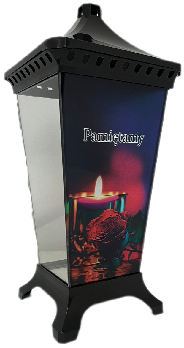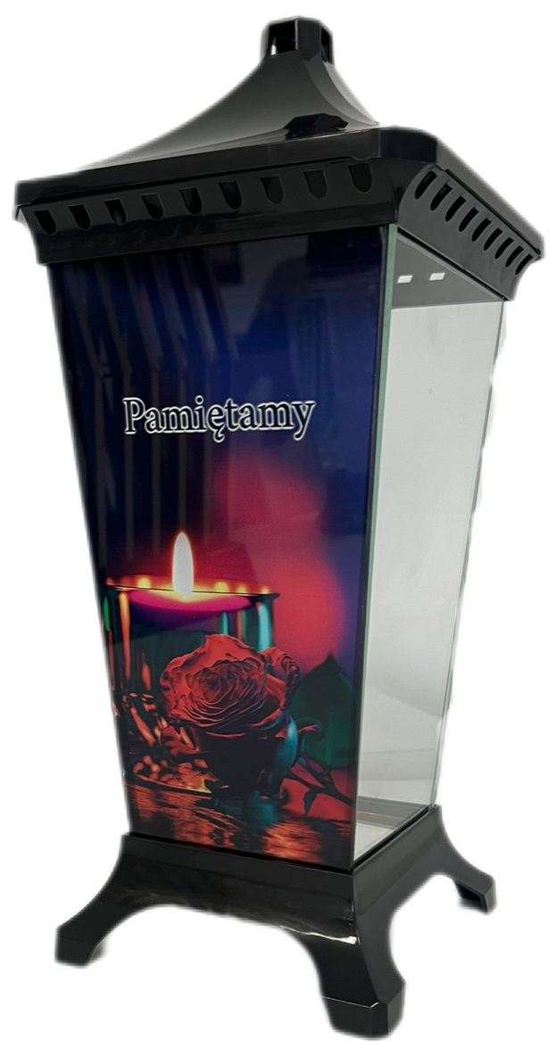 Elegancki Design: Znicz o kształcie latarenki z czterema ściankami, co nadaje mu nowoczesny i dostojny wygląd.