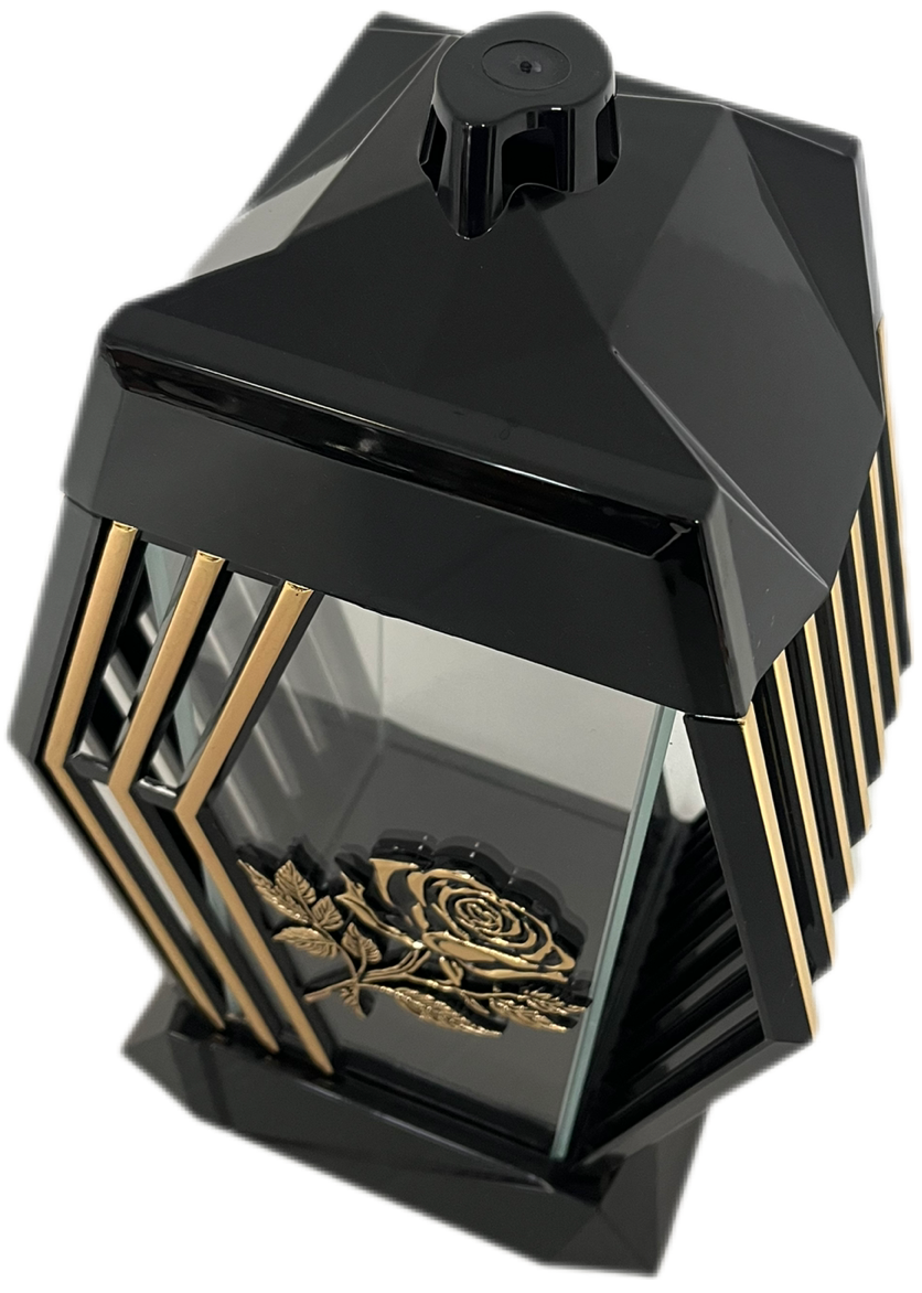 Wysoka Jakość Materiałów: Solidna podstawa i daszek zapewniają stabilność, a przezroczyste szyby chronią płomień przed wiatrem i deszczem, gwarantując długi czas palenia.
