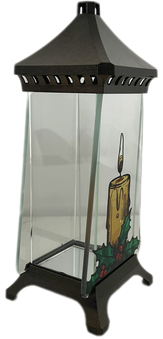 Wyjątkowy Design: Latarenka o klasycznej, czarnej konstrukcji i przezroczystych szklanych ściankach.