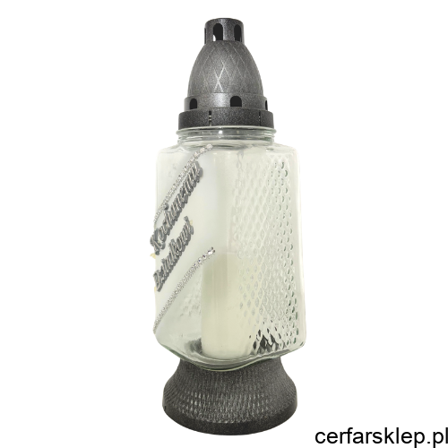 Elegancki i pełen blasku znicz szklany, stworzony z myślą o upamiętnieniu najbliższej osoby. Połączenie klasycznej formy z nowoczesnymi, lśniącymi zdobieniami sprawia, że prezentuje się on wyjątkowo godnie na każdym nagrobku.