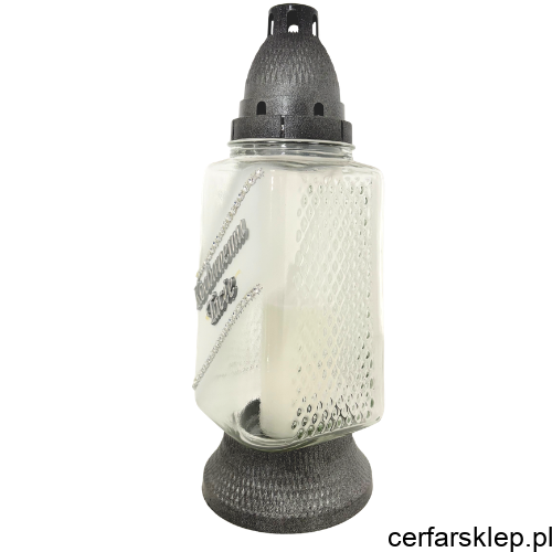 Elegancki i pełen blasku znicz szklany, stworzony z myślą o upamiętnieniu najbliższej osoby. Połączenie klasycznej formy z nowoczesnymi, lśniącymi zdobieniami sprawia, że prezentuje się on wyjątkowo godnie na każdym nagrobku.