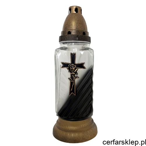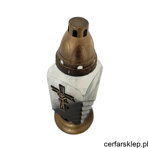 Ten wyjątkowy znicz łączy w sobie klasyczną symbolikę z nowoczesnym wzornictwem. Charakteryzuje się stonowaną kolorystyką w odcieniach złota, co nadaje mu niezwykle podniosły i elegancki charakter.