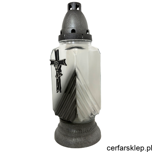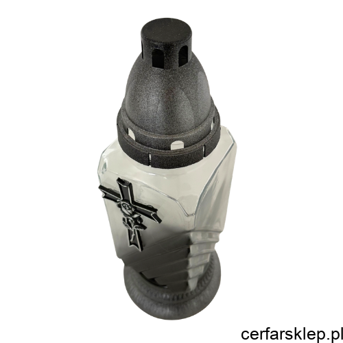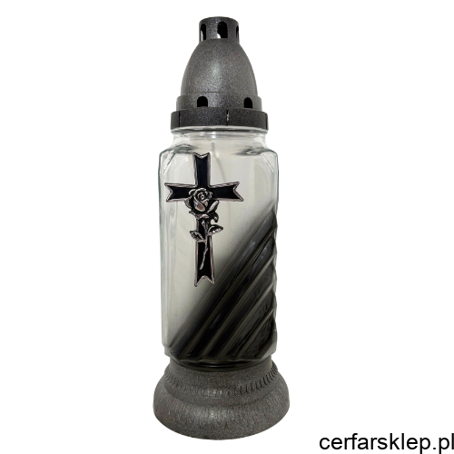 Ten wyjątkowy znicz łączy w sobie klasyczną symbolikę z nowoczesnym wzornictwem. Charakteryzuje się stonowaną kolorystyką w odcieniach srebra i grafitu, co nadaje mu niezwykle podniosły i elegancki charakter.