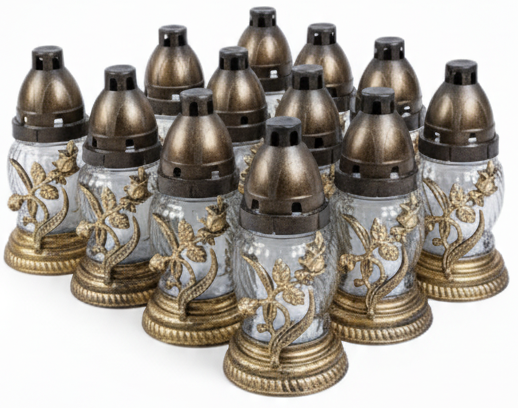 Przedstawiamy Państwu niezwykle dekoracyjny znicz nagrobny, który zachwyca bogatym, złotym ornamentem o motywie kwiatowym. Ten misternie wykonany znicz będzie stanowił wyjątkowo elegancki i pełen pamięci akcent na każdym nagrobku.