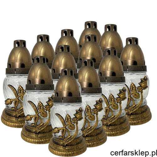 Wyjątkowe zdobienie: Front znicza zdobi precyzyjna aplikacja w kształcie róży, wykończona w kolorze patynowanego złota, co nadaje mu luksusowy i ponadczasowy wygląd.