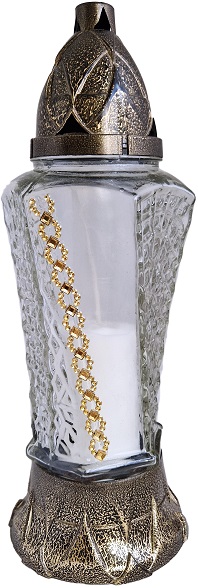 Uczcij pamięć swoich bliskich tym pełnym klasy zniczem. Jego tradycyjny kształt został wzbogacony o stylowe elementy, tworząc harmonijną całość. Znicz ten będzie pięknym i trwałym symbolem pamięci.