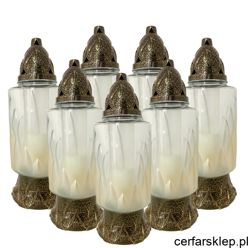 Wskazówka: Znicz najlepiej prezentuje się z wkładami o białym lub ciepłym żółtym świetle, które podkreślają perłowy blask szkła.