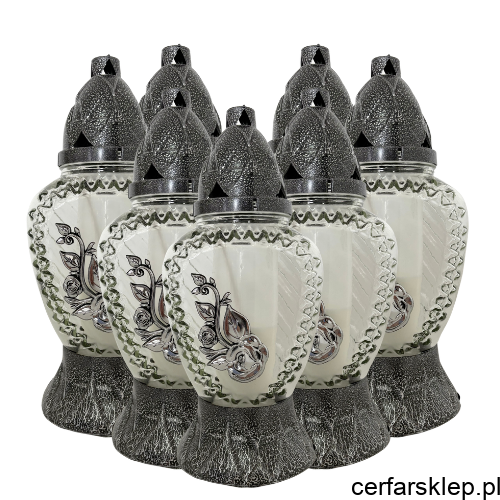 Elegancki znicz o klasycznym kształcie, który łączy w sobie wysoką jakość wykonania z subtelnym zdobnictwem. Srebrne wykończenie nadaje mu podniosły charakter, sprawiając, że prezentuje się wyjątkowo na każdym nagrobku.