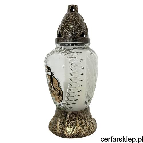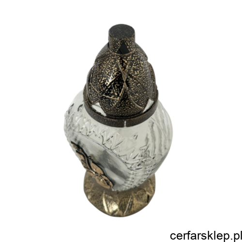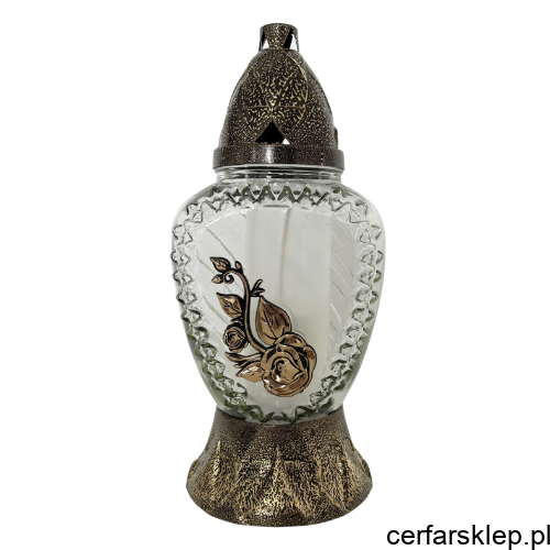 Elegancki znicz o klasycznym kształcie, który łączy w sobie wysoką jakość wykonania z subtelnym zdobnictwem. Złote wykończenie nadaje mu podniosły charakter, sprawiając, że prezentuje się wyjątkowo na każdym nagrobku.