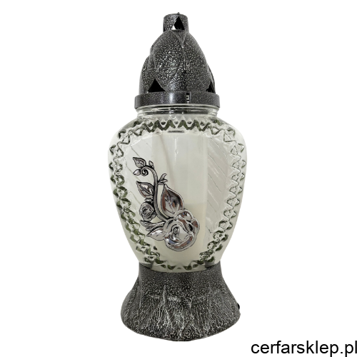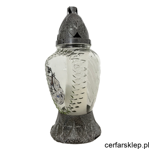 Elegancki znicz o klasycznym kształcie, który łączy w sobie wysoką jakość wykonania z subtelnym zdobnictwem. Srebrne wykończenie nadaje mu podniosły charakter, sprawiając, że prezentuje się wyjątkowo na każdym nagrobku.