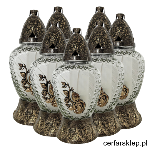 Elegancki znicz o klasycznym kształcie, który łączy w sobie wysoką jakość wykonania z subtelnym zdobnictwem. Złote wykończenie nadaje mu podniosły charakter, sprawiając, że prezentuje się wyjątkowo na każdym nagrobku.