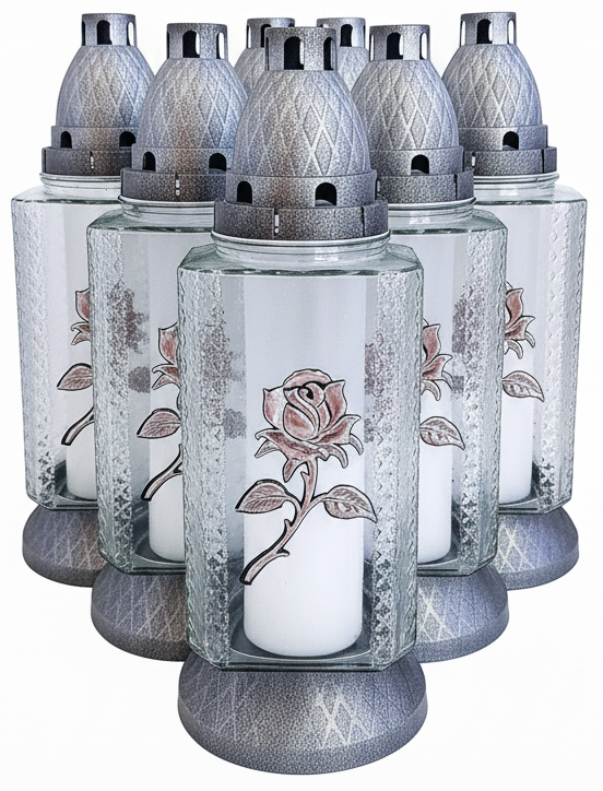 • Przeznaczenie: Idealny do umieszczenia na nagrobkach, tworząc godne miejsce pamięci. Przystosowany do różnego rodzaju wkładów – zarówno świec, jak i wkładów olejowych czy parafinowych.