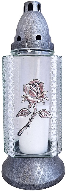 Znicz Nagrobny z Srebrnym Motywem Róży