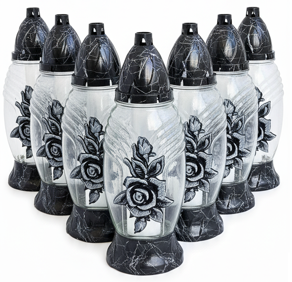 Znicz Nagrobny z Czarno-Srebrnym Motywem Róży