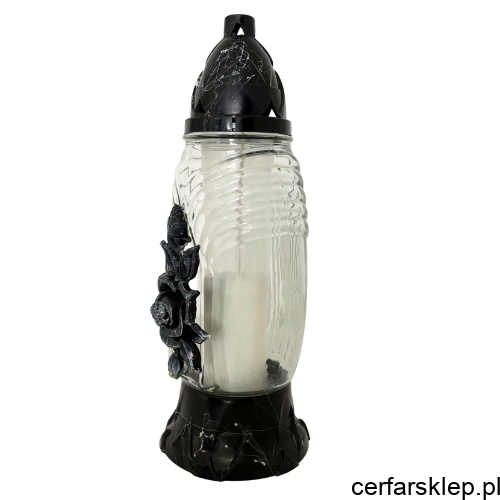 244-znicz z czarną różą przód 1 sztuka244-znicz z czarną różą lewy bok 1 sztuka244-znicz z czarną różą od góry 1 sztuka