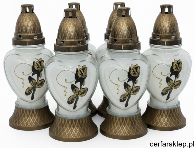 Przedstawiamy Państwu wyjątkowy znicz nagrobny w kształcie serca, ozdobiony elegancką, różą. Ten pełen ciepła i subtelności znicz będzie wzruszającym wyrazem pamięci i miłości do bliskich.