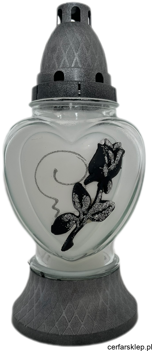 Przedstawiamy Państwu wyjątkowy znicz nagrobny w kształcie serca, ozdobiony elegancką, różą. Ten pełen ciepła i subtelności znicz będzie wzruszającym wyrazem pamięci i miłości do bliskich.