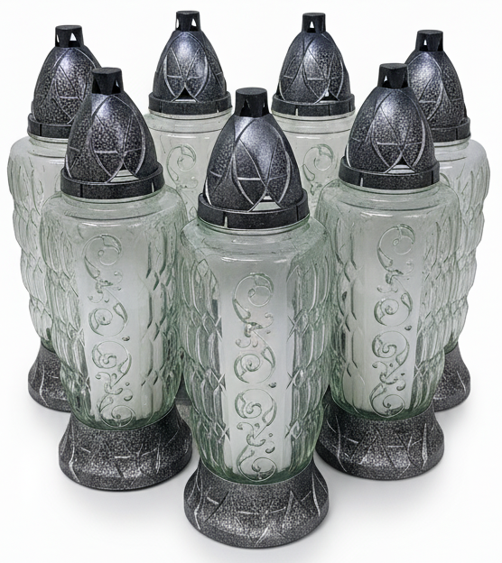 Przedstawiamy Państwu gustowny znicz szklany, który łączy w sobie klasyczną elegancję z nowoczesnym designem. Wykonany z wysokiej jakości, grubego szkła o subtelnej fakturze, zdobiony delikatnymi, wytłaczanymi wzorami o motywach roślinnych.