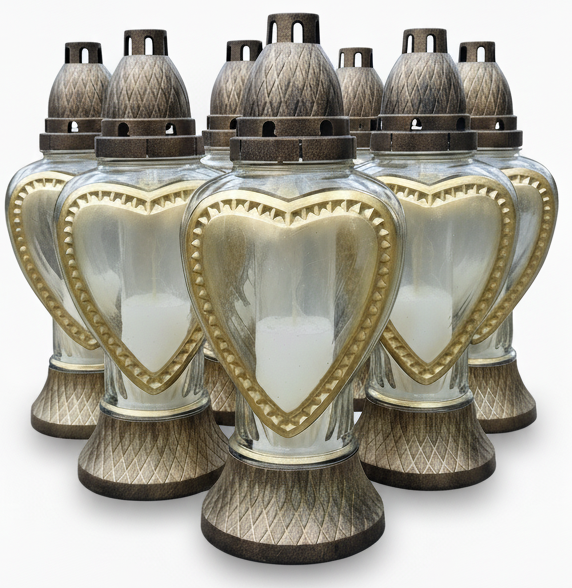 Ten wyjątkowy znicz łączy w sobie klasyczną formę serca z eleganckimi, złotymi akcentami, tworząc pełen ciepła i pamięci wyraz hołdu dla bliskiej osoby. Wykonany z wysokiej jakości, przezroczystego szkła, pozwala na subtelne rozproszenie światła płonącej świecy.