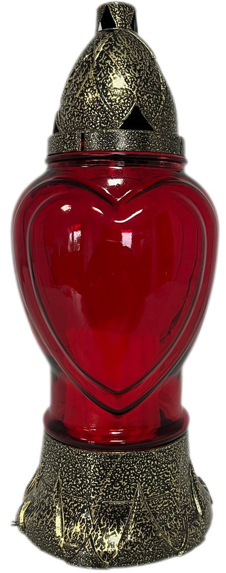 Ten elegancki znicz w kształcie serca to piękny i ponadczasowy sposób na uczczenie pamięci bliskiej osoby. Wykonany z wysokiej jakości, intensywnie czerwonego szkła, przyciąga wzrok swoim głębokim kolorem i prostą, ale wymowną formą.