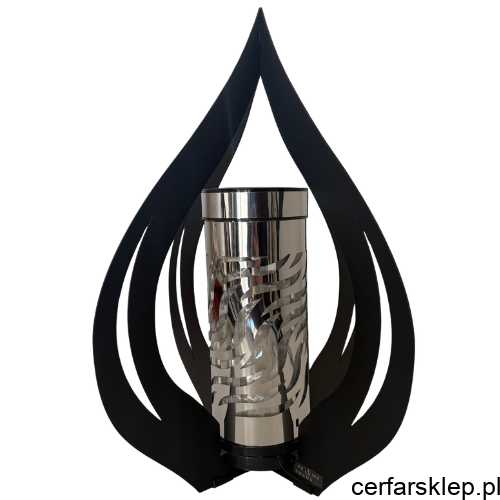 Efektowny Design: Obudowa w kształcie stylizowanego, czarnego płomienia otacza srebrny, lustrzany wkład. Ażurowe wycięcia we wkładzie sprawiają, że światło przenika przez nie w sposób subtelny i nastrojowy.