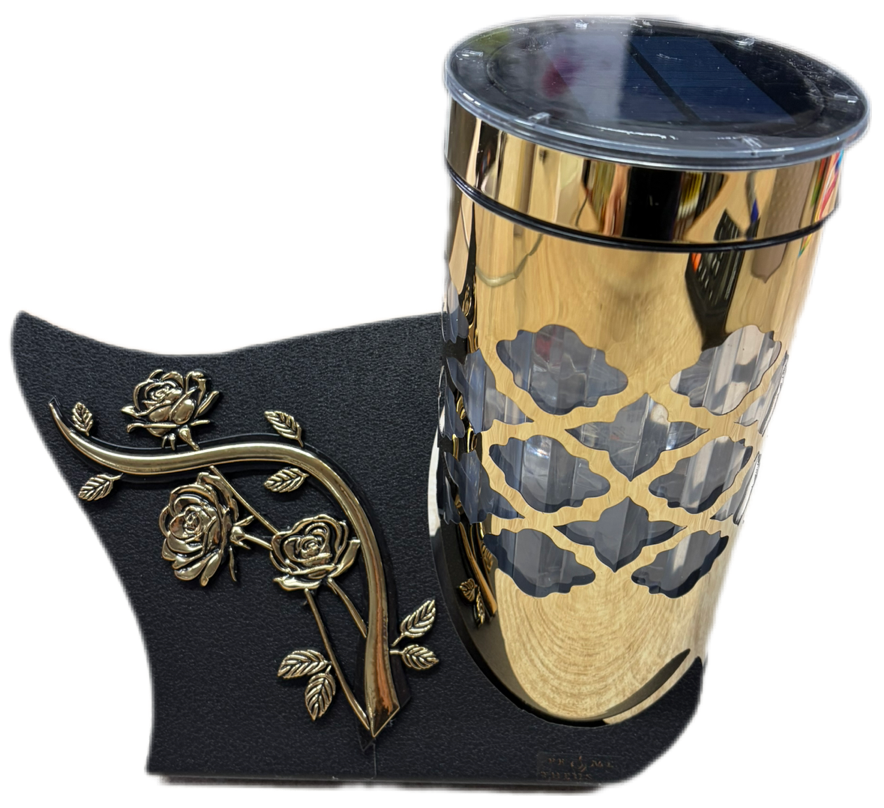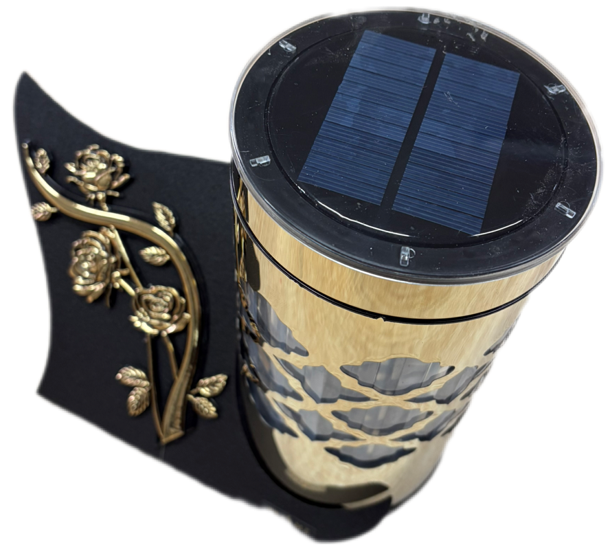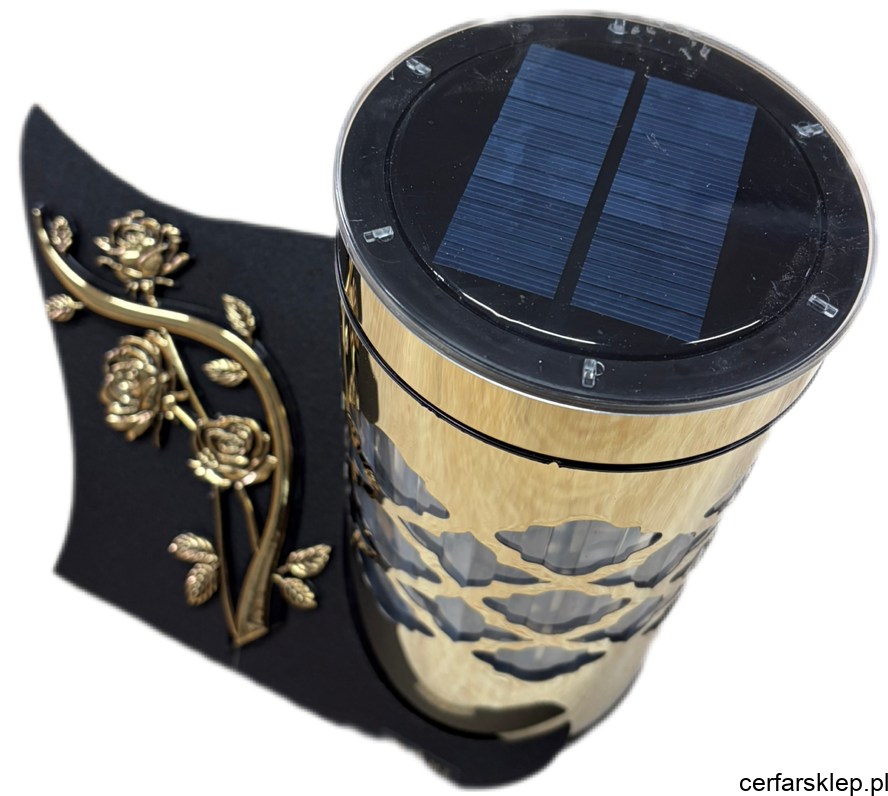Ten wyjątkowy znicz solarny to połączenie nowoczesnej technologii z klasyczną elegancją. Zaprojektowany z myślą o trwałości i estetyce, stanowi godny sposób na uczczenie pamięci bliskich. Złote wykończenie oraz precyzyjne zdobienia sprawiają, że pięknie prezentuje się na każdym nagrobku, niezależnie od pory roku.