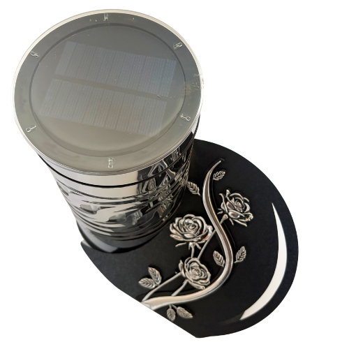 Ekologiczne Zasilanie Solarne: Dzięki wbudowanemu panelowi słonecznemu, znicz jest całkowicie bezobsługowy. Kumuluje energię w ciągu dnia, by po zmroku rozbłysnąć delikatnym światłem, symbolizując wieczną pamięć bez konieczności wymiany wkładów.