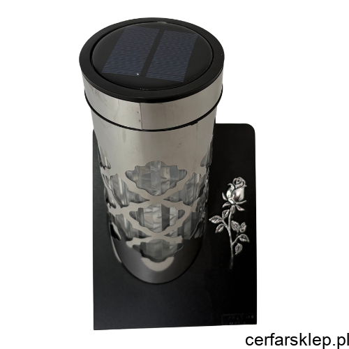 Znicz Solarny Srebrny Paris Latarenka z Motywem Róży