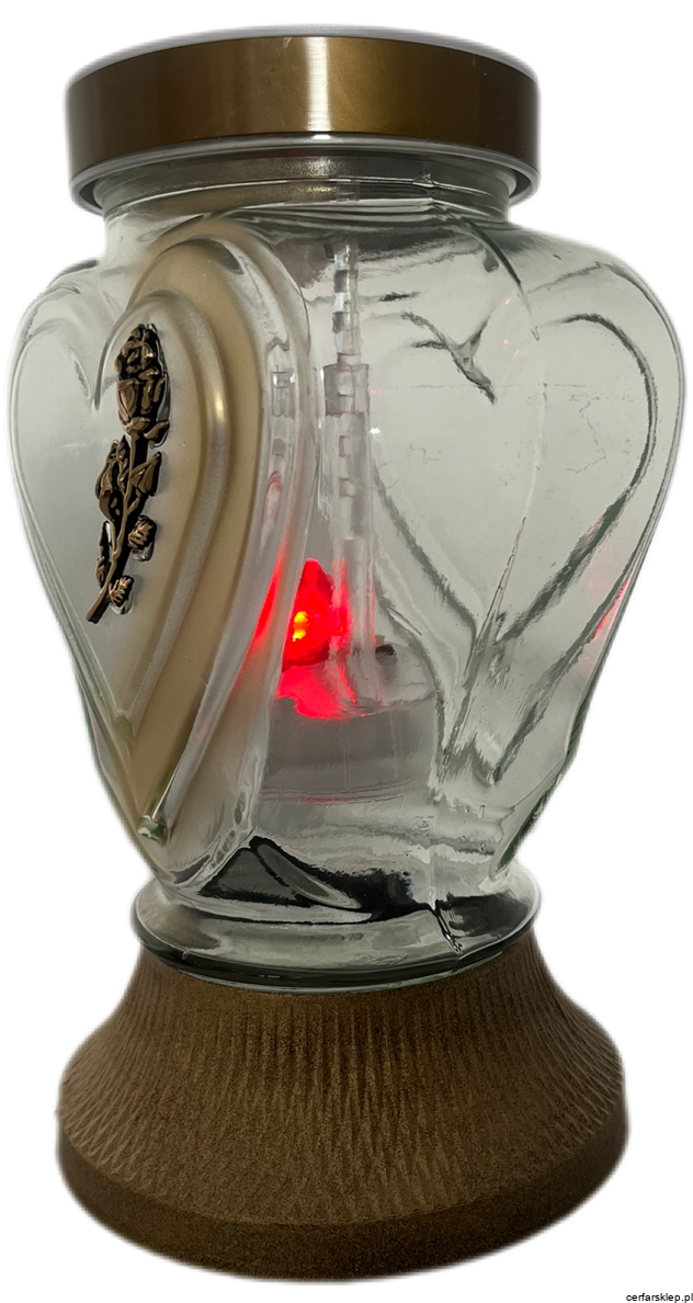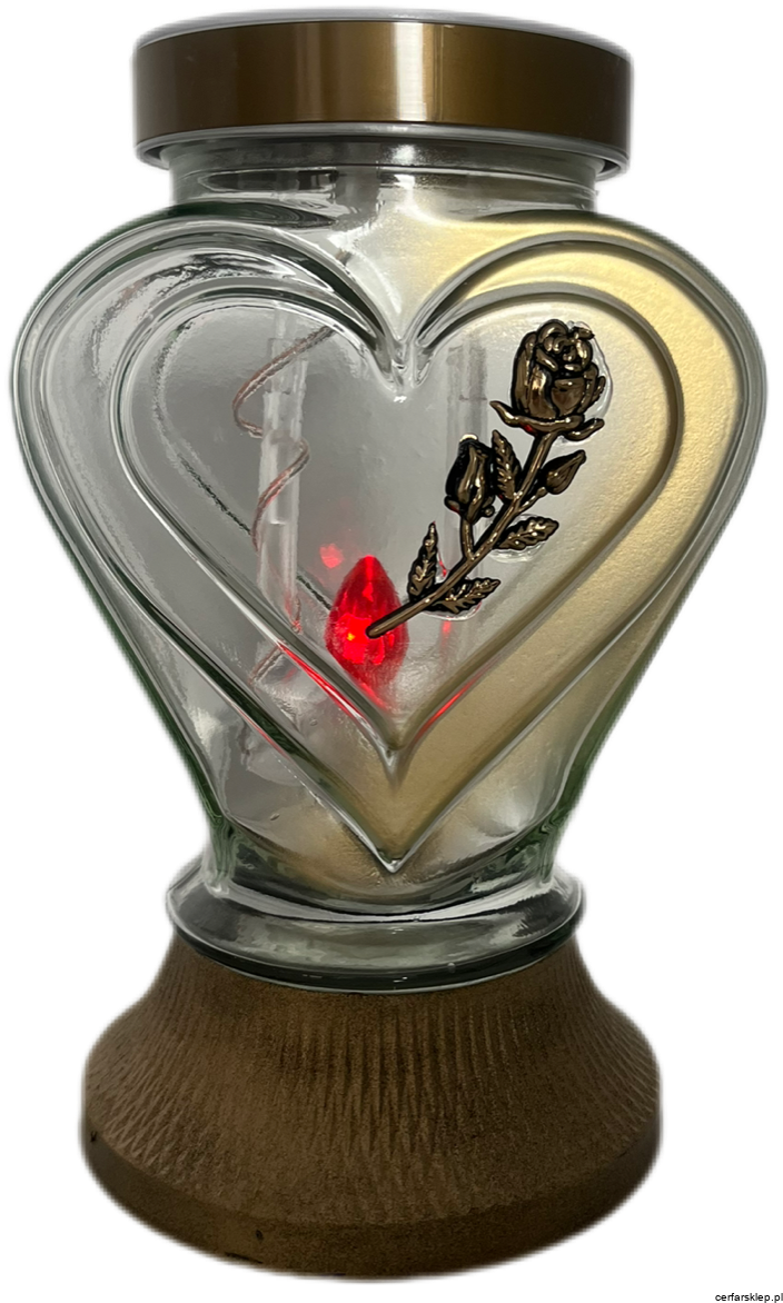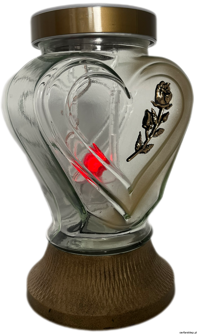 Symboliczny Kształt Serca: Lampa ma piękny, sercowaty kształt, który doskonale wyraża miłość, pamięć i wieczną więź z bliskimi. Wewnątrz szklanej formy widać delikatne, czerwone światło LED, imitujące płomień, które pulsuje ciepłym blaskiem.