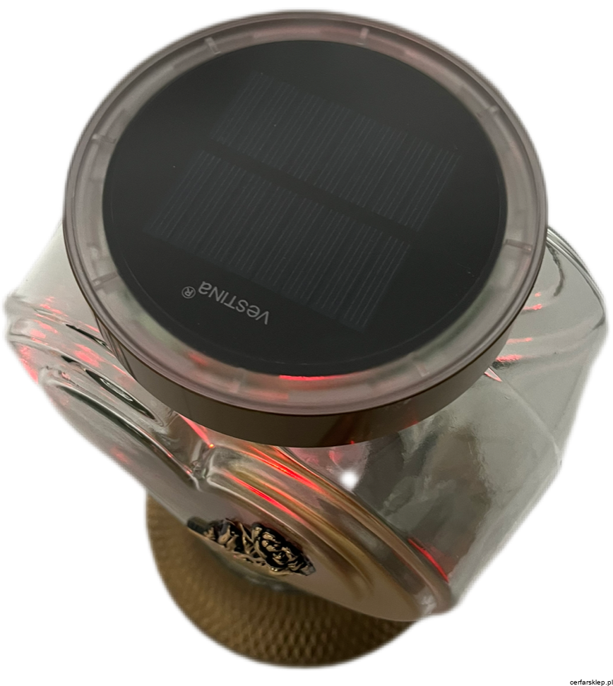 Wbudowany panel solarny ładuje akumulator w ciągu dnia (wystawiony na światło słoneczne).