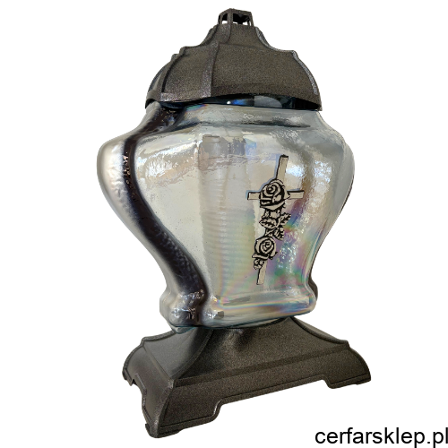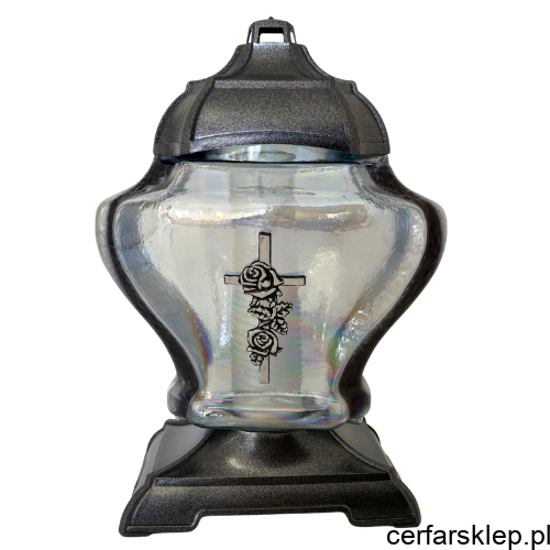 Elegancki i pełen powagi znicz szklany, który łączy w sobie klasyczną formę z nowoczesnym wykończeniem. Wyjątkowy efekt wizualny oraz dbałość o detale sprawiają, że stanowi on godne upamiętnienie bliskich na miejscu spoczynku.