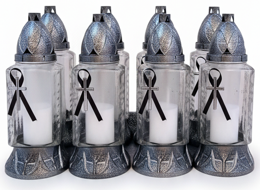 Prezentujemy Państwu wyjątkowy znicz szklany, który w symboliczny sposób łączy motyw serca i krzyża, stanowiąc wzruszający wyraz pamięci i miłości do Najbliższych. Jego staranne wykonanie i elegancki design sprawiają, że będzie piękną ozdobą każdego miejsca pamięci.