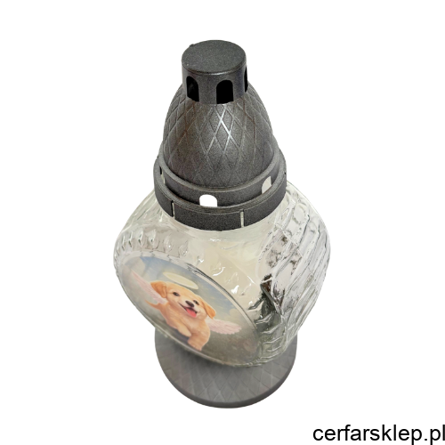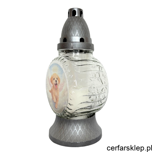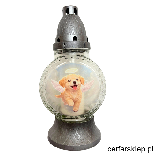 Ten unikalny znicz został zaprojektowany z myślą o osobach, które pragną w szczególny sposób uczcić pamięć o swoim ukochanym psie. Centralnym punktem znicza jest urocza grafika przedstawiająca biszkoptowego szczeniaka ze skrzydłami anioła i aureolą, co nadaje mu niezwykle ciepły i nostalgiczny charakter.